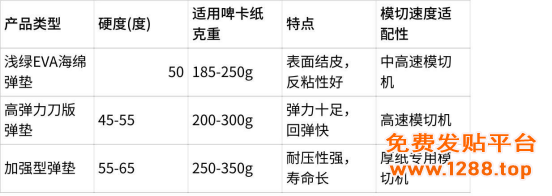 选择啤卡纸刀版弹垫时需要关注以下几个关键参数: